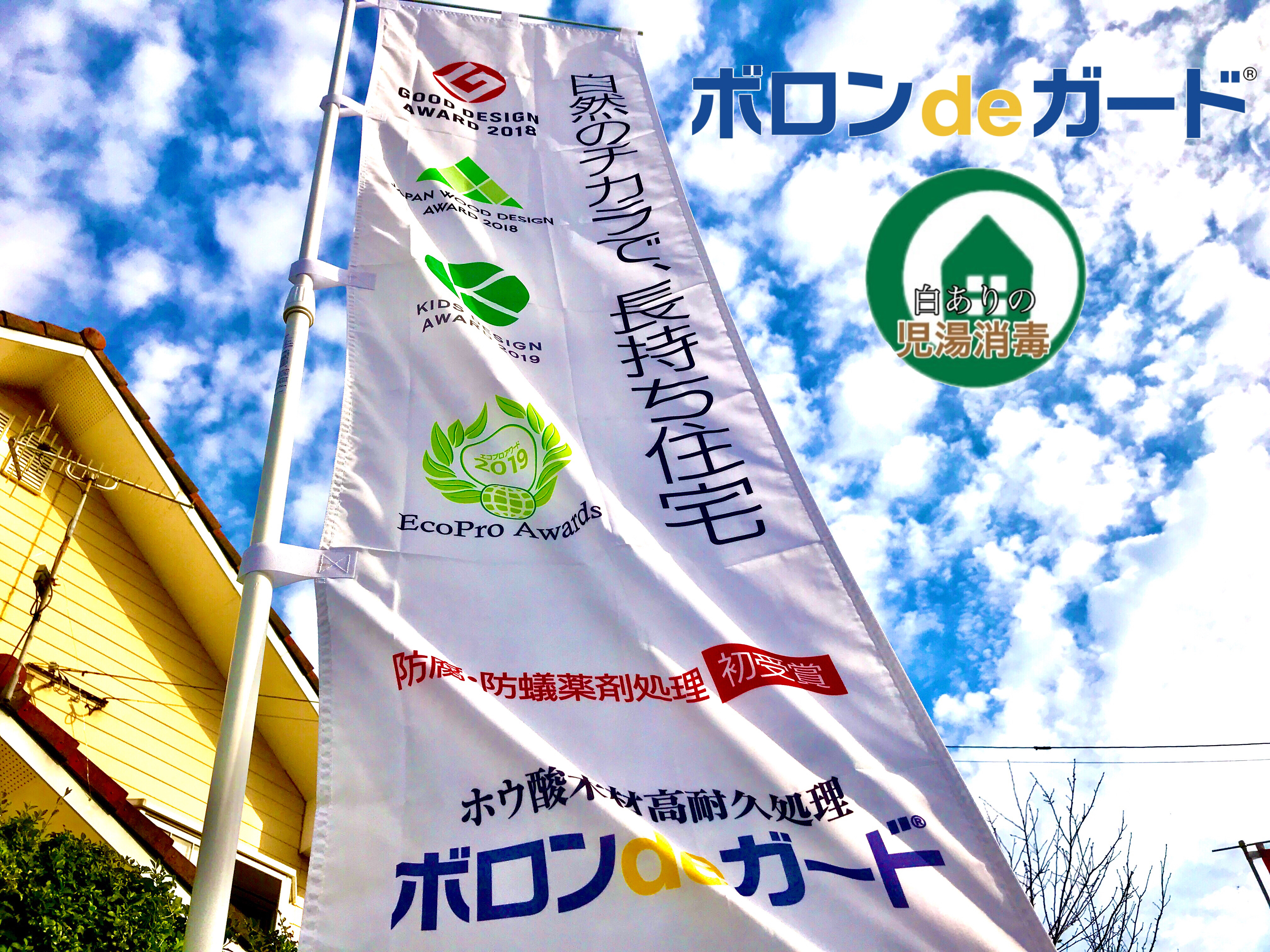 ボロンdeガード工法は2018年にグッドデザイン賞、ウッドデザイン賞をW受賞し、キッズデザイン賞、エコプロアワードと四冠を受賞するなど、今まで日の光を浴びる事のなかった防蟻対策において注目を集めています。
