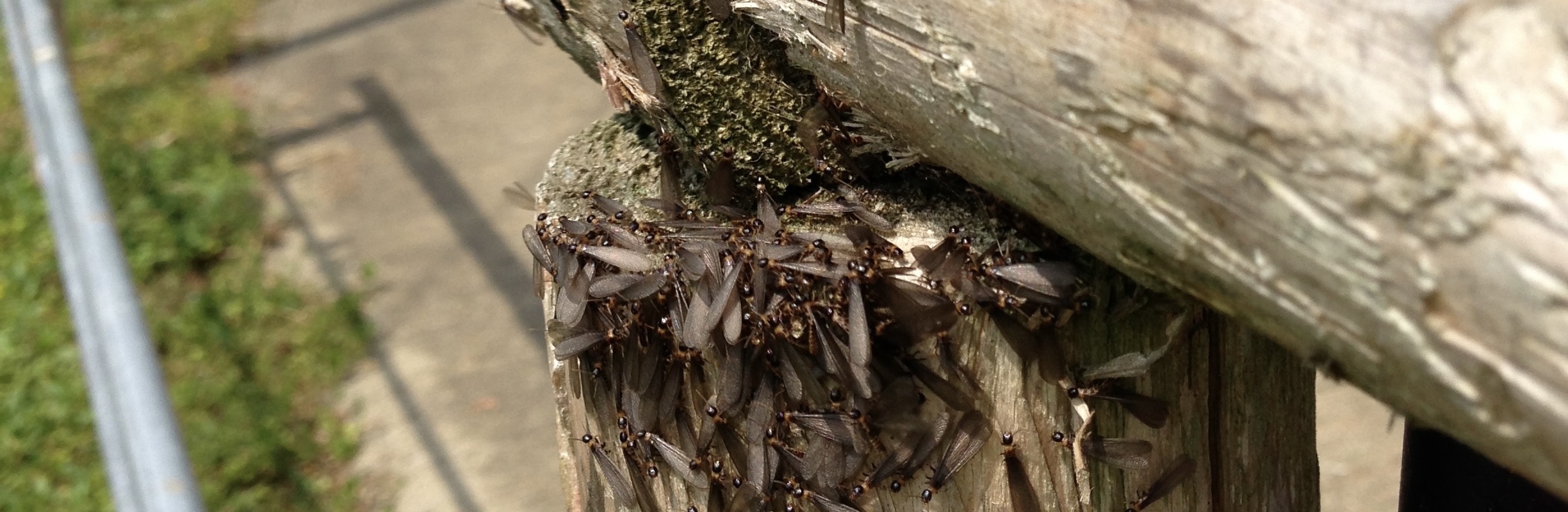 ヤマトシロアリが4月中旬頃から(雨上りの風が少なく蒸し暑い午前10時頃から)