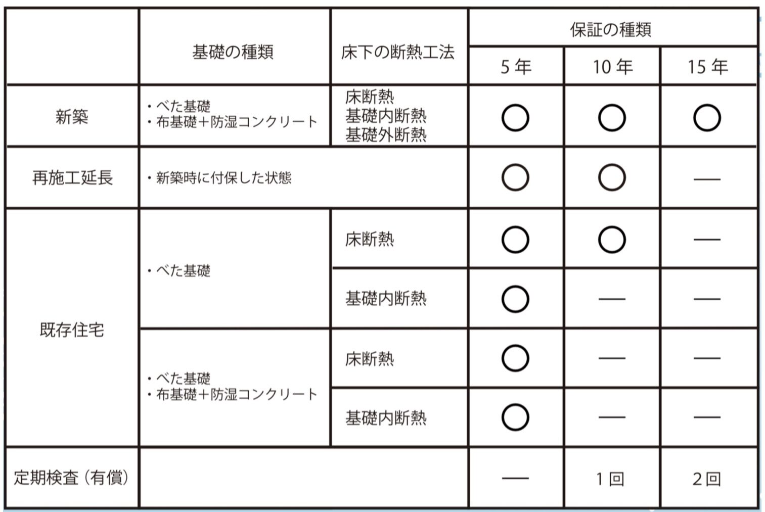 ※基礎形状や断熱工法によっては下記の通り保証条件が異なります。